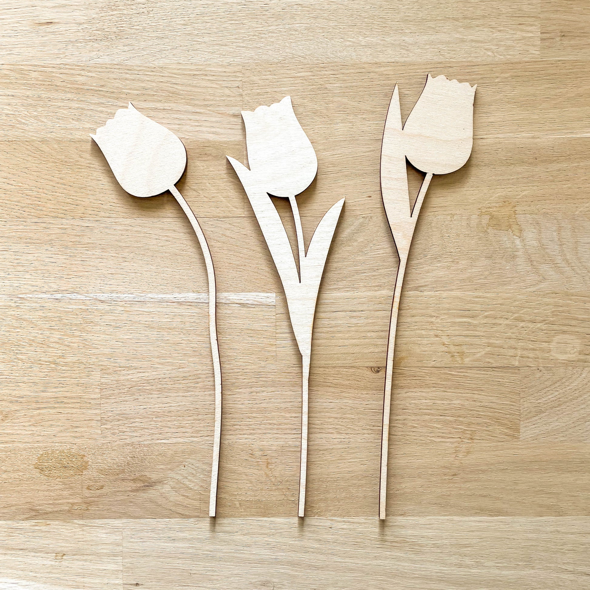 Large Individual Wooden Tulip Stems - Unfinished - Paint Your Own - END OF LINE