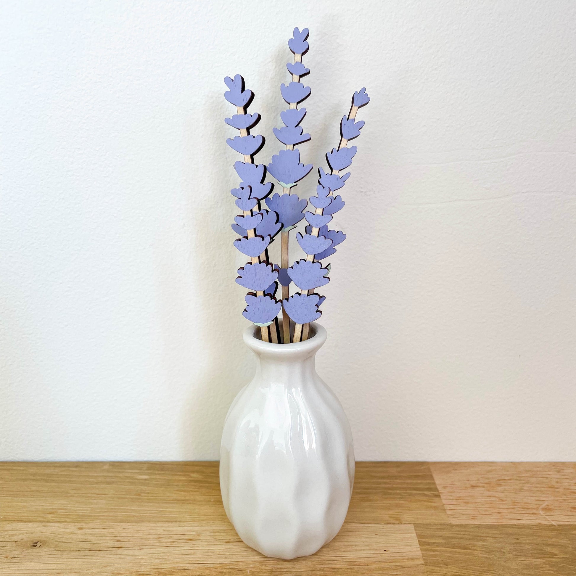 Mini lavender flower set. Five stems included. All flowers painted on both sides for a lovely display from any angle. These are discounted as an end of line product.