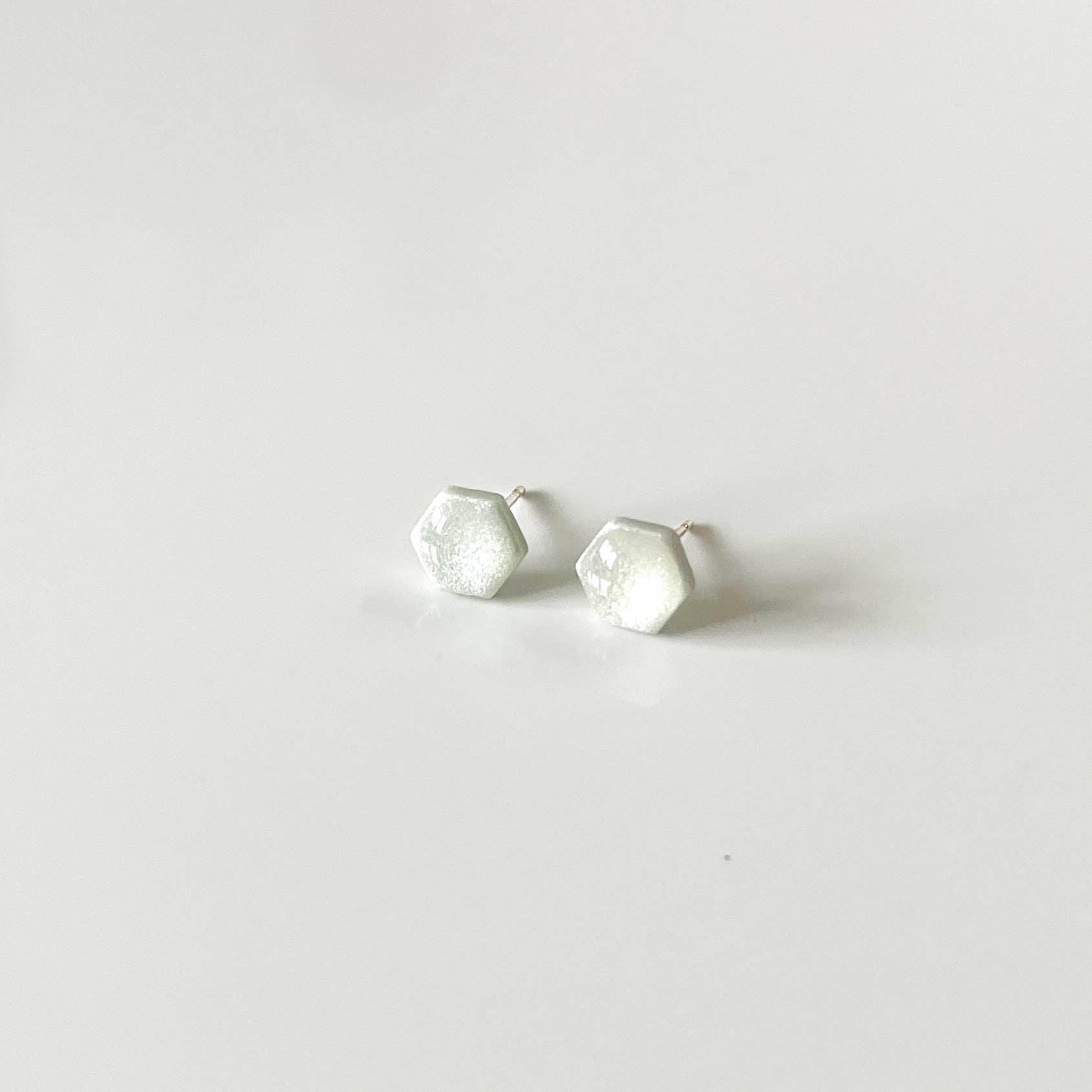 Light Green Shimmer Hexagon Stud Earrings
