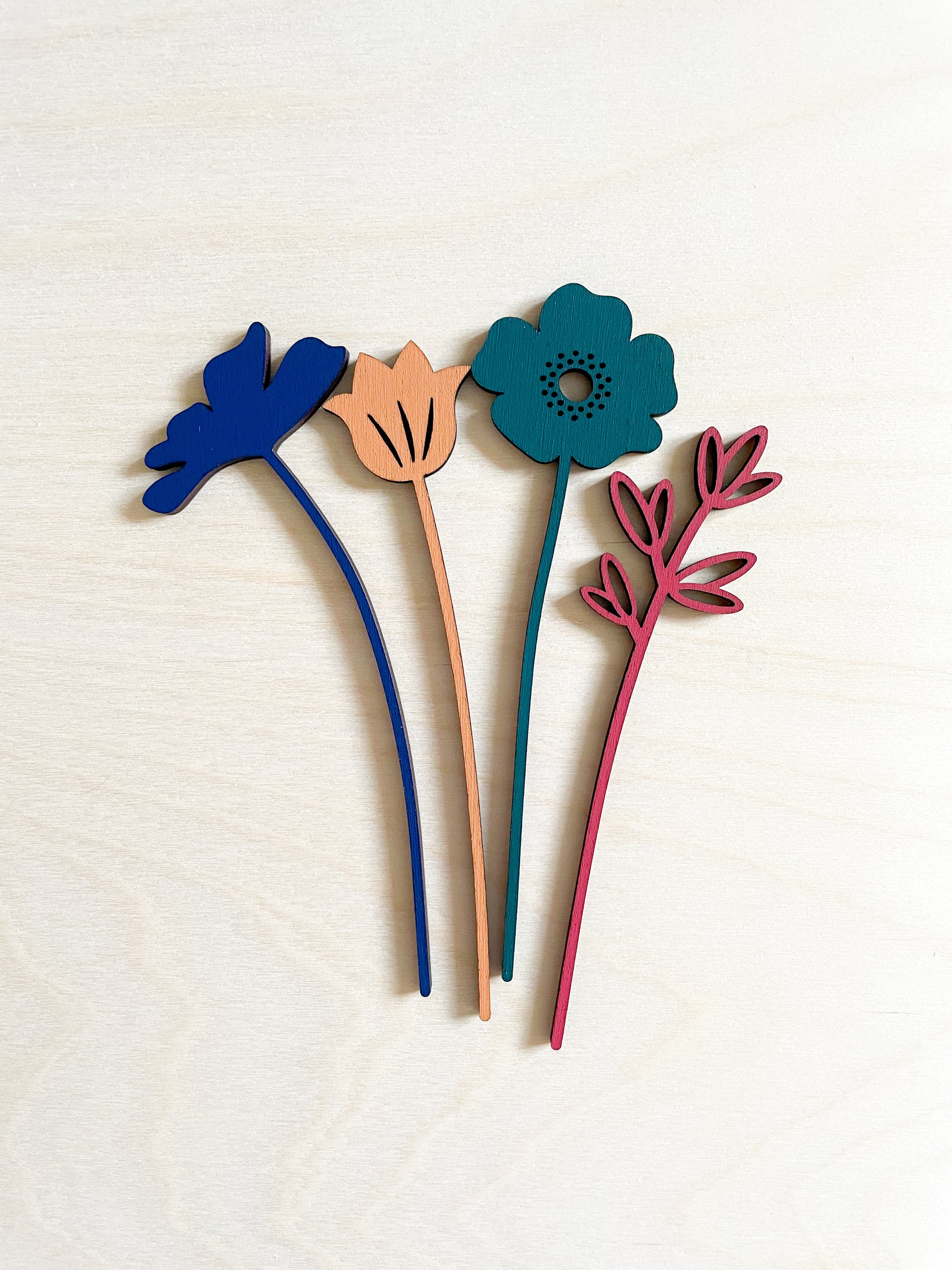 ✔ 4 hand-painted wooden wildflower stems (painted on both sides)