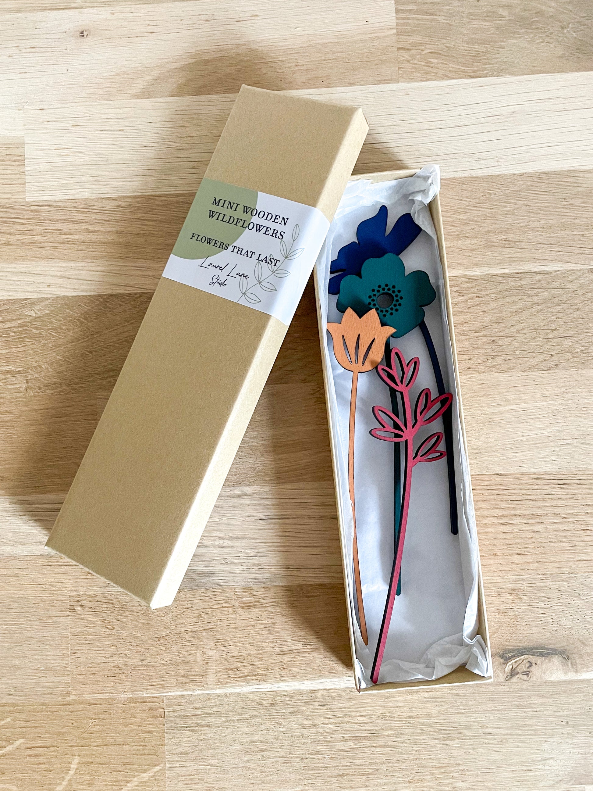 This Mini Wooden Wildflower Gift Set brings a touch of nature indoors with delicate floral stems that will never wilt. Each flower is handmade and hand-painted on both sides, ensuring a high-quality finish from every angle.