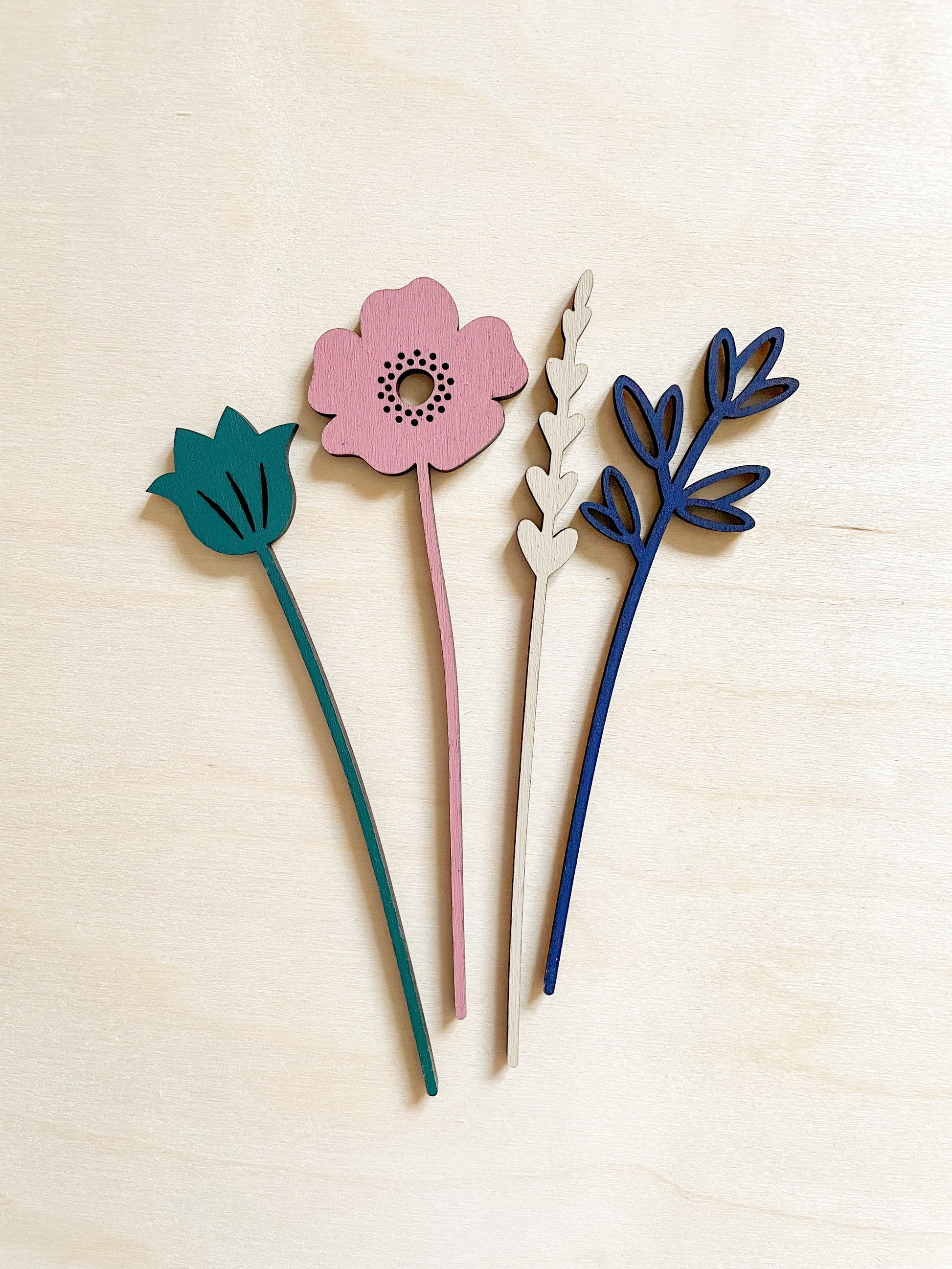 ✔ 4 hand-painted wooden wildflower stems (painted on both sides)