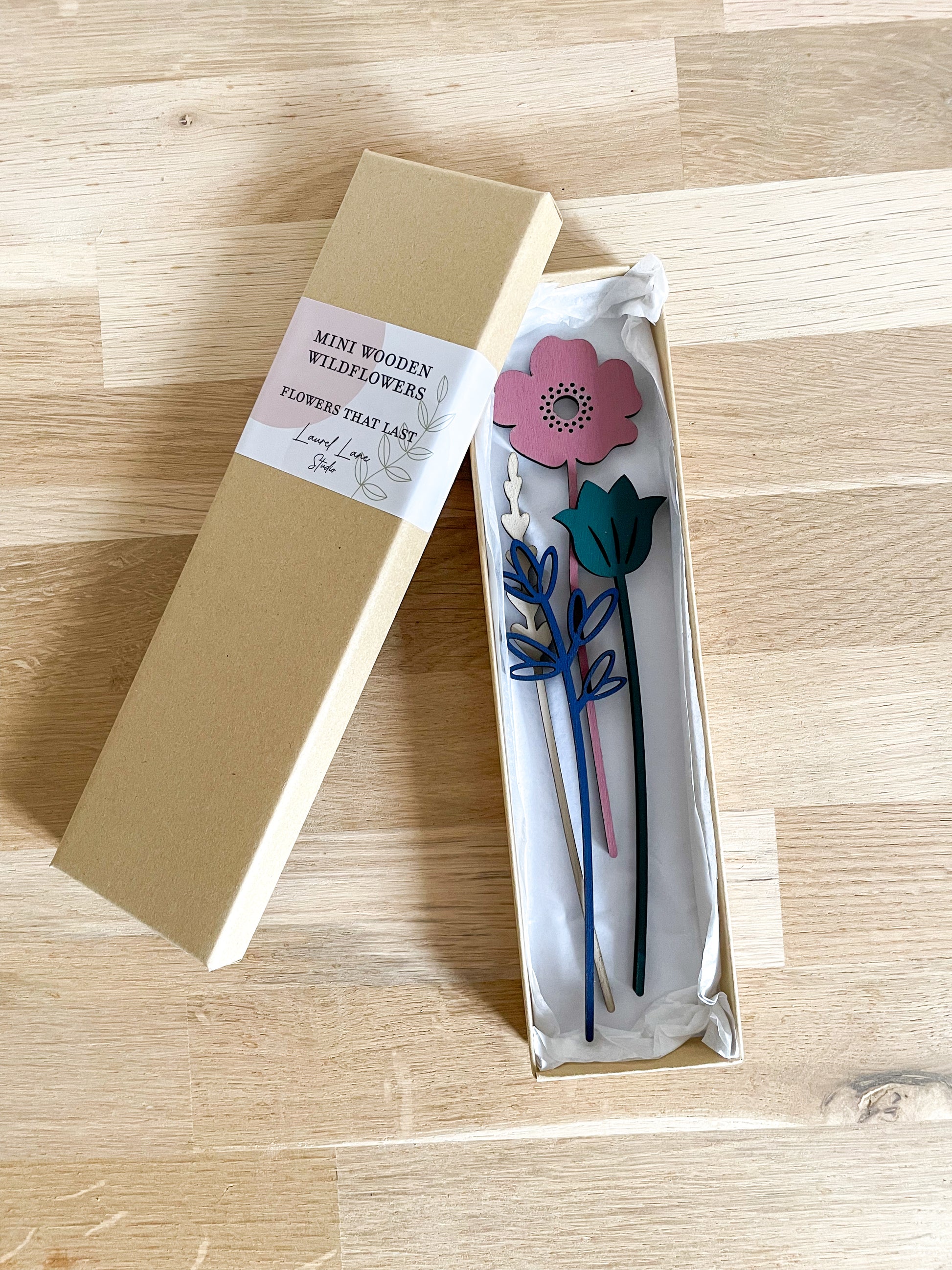 This Mini Wooden Wildflower Gift Set brings a touch of nature indoors with delicate floral stems that will never wilt. Each flower is handmade and hand-painted on both sides, ensuring a high-quality finish from every angle.