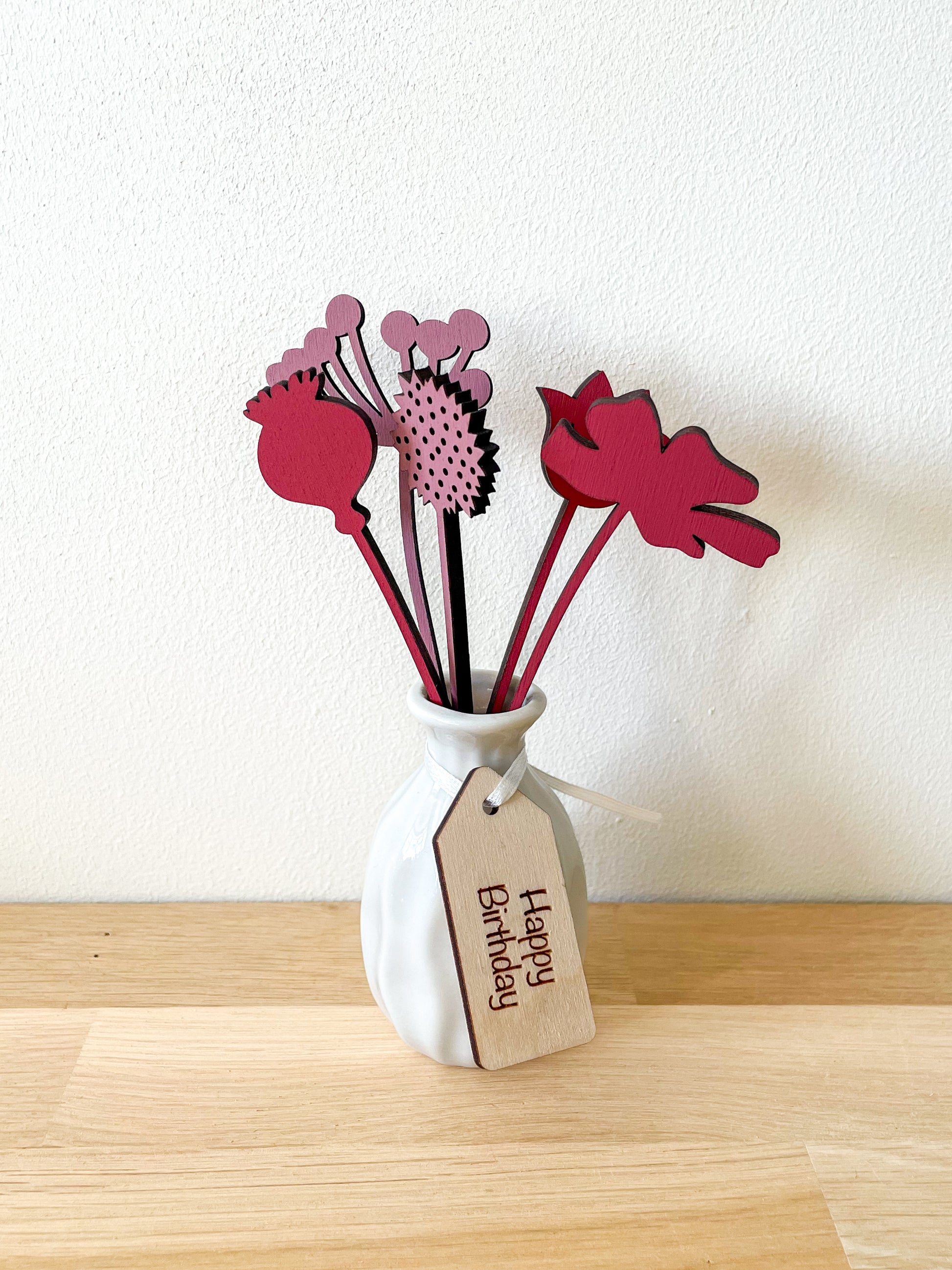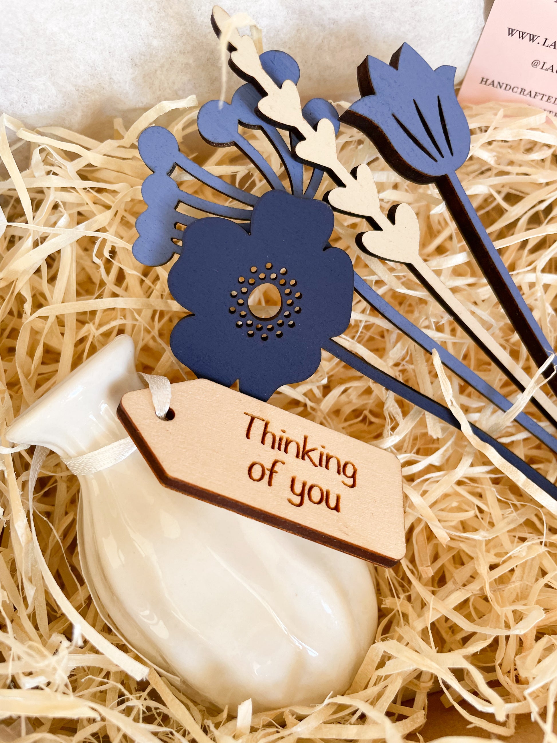 Enhance your gift with a beautiful Wooden Gift Tag! Each tag comes with a satin white ribbon, perfect for attaching to your order in any way you like. Add a personal touch and make your gift extra special. Tie it around a vase, the stems of wooden flowers, or place inside a gift box.